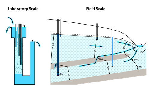ينصب التركيز على التدفق الثابت والمشبع لإظهار كيفية تأثر توزيع الرأس والتدرجات داخل المنطقة المشبعة تحت السطح بتغير الموصلية الهيدروليكية وحدود مجال التدفق. يتم استخدام مخططات بسيطة ، يمثل كل منها لغزا مرئيا بحيث بعد دراسة تسلسل الألغاز والتمارين المتداخلة من نفس الشكل ، يكون لدى الطالب الأساس اللازم لتصور أنماط تدفق المياه الجوفية وتفسير قياسات ارتفاع مستوى المياه في آبار أنظمة المياه الجوفية في الحقل.